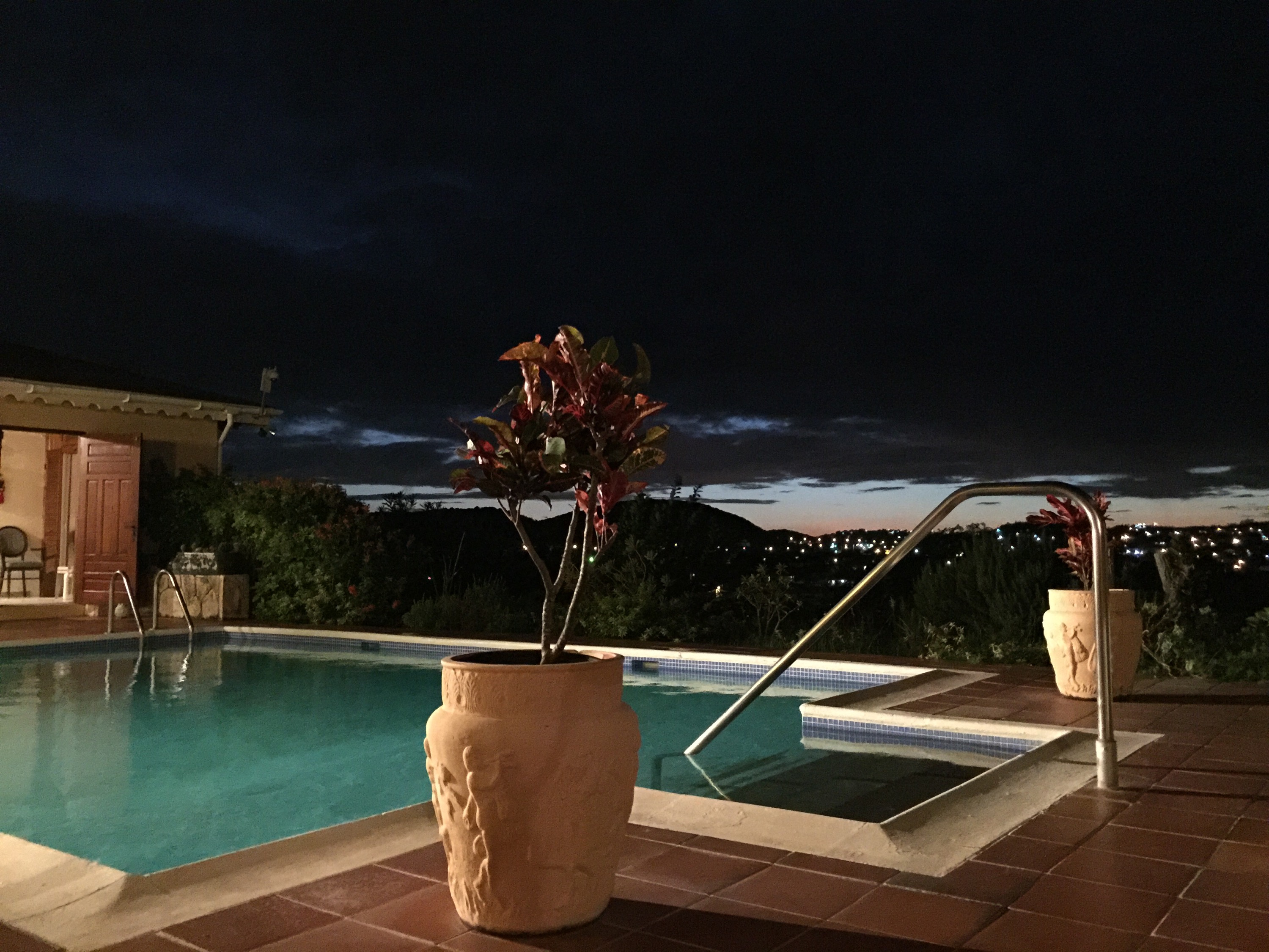 The house we went to for the get together was on another part of the island, closer to the airport. It was formerly a hotel or inn, I believe. It is set high on a hill with beautiful panoramic views from the back patio, wraparound porch and pool area.